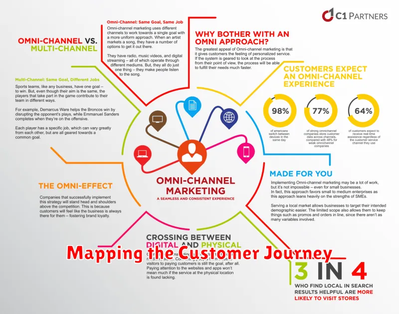 Mapping the customer journey is crucial for effective omnichannel marketing. It involves visualizing the process customers go through when interacting with your brand, from initial awareness to post-purchase engagement.